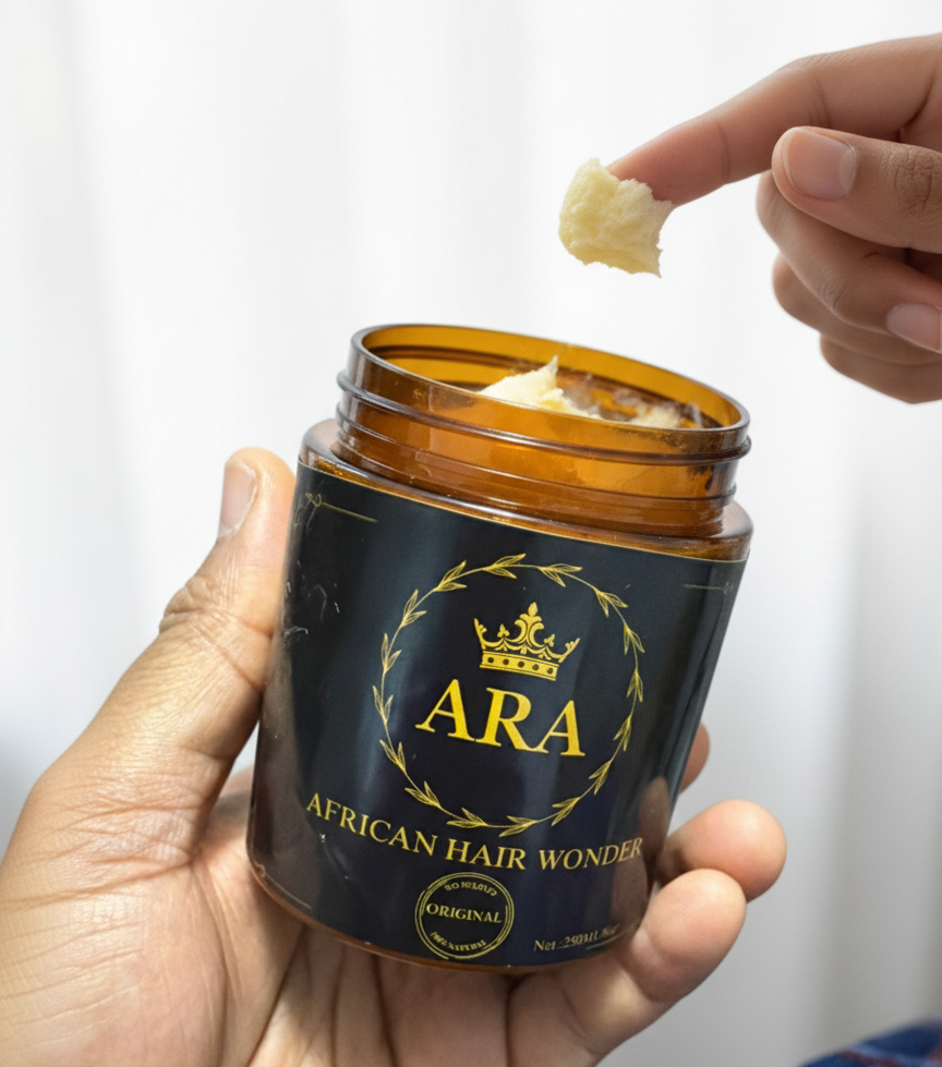 Elevate your hair care routine with African Hair Wonder, a premium, all-natural treatment designed to restore vitality, strength, and an unmistakable glow to your tresses. Housed in a sophisticated amber jar with an eco-friendly bamboo lid, this professional-grade formula combines centuries-old African beauty secrets with modern botanical science.